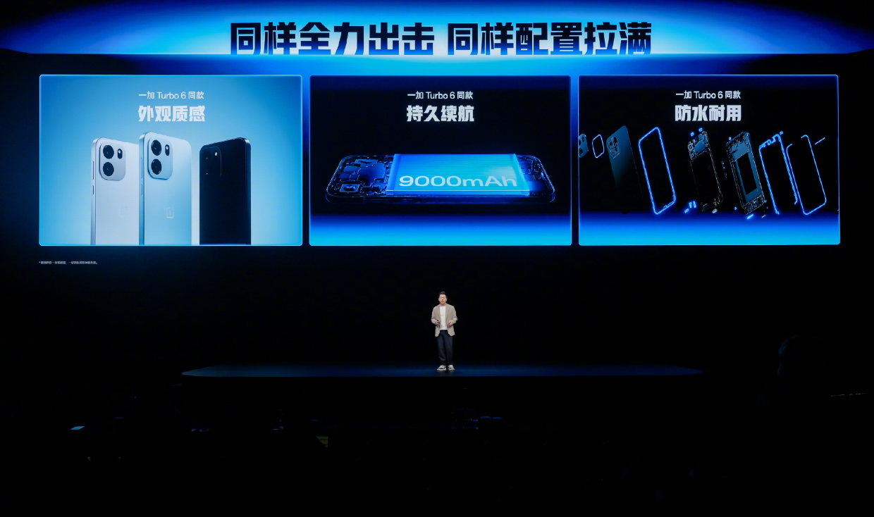 一加 Turbo 6V拥有一加 Turbo 6 同款外观质感,但配备三种全新配色:新星白、无畏蓝、独行黑,并搭载 一加 Turbo 6同款 9000mAh 超大容量冰川电池和IP66/68/69/69K满级防水,也同样支持80W闪充和27W反向充电。