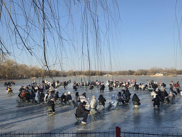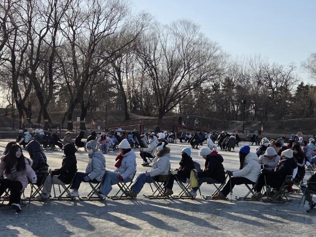 冰场上最引人注目的要数“多人冰车接龙”,只需一声招呼,便能结成一支队伍,大家一起气喘吁吁地奋力划行,一起无忧无虑地开怀大笑,不相识的游客通过这样简单的方式迅速拉近了距离。从海南来京独自旅行的32岁游客小钟正是被这样热闹的场景吸引而来。“这是我第一次体验冰上运动,起初还有些紧张,”她笑着说,“没想到加入接龙队伍后,大家很自然地就玩到一起了,氛围特别好,让人特别放松。”